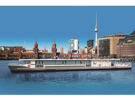 Discover Berlin aboard a festively decorated solar catamaran.Enjoy a quiet, eco-friendly cruise on the Spree with Berlin’s most modern, emission-free vessel. Glide past iconic sights like the East Side Gallery, Nikolaiviertel, Museum Island, and the Reichstag, all while relaxing in a stylish and sustainable setting.The trip starts at the Solarwaterworld AG harbor near the Oberbaum Bridge (Stralauer Allee 3, behind the nhow Hotel). You will pass under the Oberbaum Bridge, stop briefly at Märkisches Ufer, and navigate through the historic Mühlendammschleuse.Onboard, enjoy drinks, cakes, and snacks as Berlin’s landmarks unfold before you, including the Chancellor’s Office, Central Station, and the House of World Cultures (“Pregnant Oyster”).